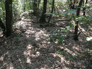 Okružný val - Kvetka sa ho pokúsila  sledovať a zamerať, ale neúspešne, pokračuje v nepriechodnom poraste s tŕňam a polomom... mal by tam ísť niekto silnejší s mačetou, ale ktovie, či smie, lebo celá Lupka je dnes v rezervácii a nevedie cez ňu žiaden riadny chodník