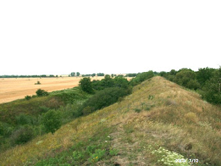 pohľad do vnútra areálu hradiska - v pozadí vidieť časť prostredného valu